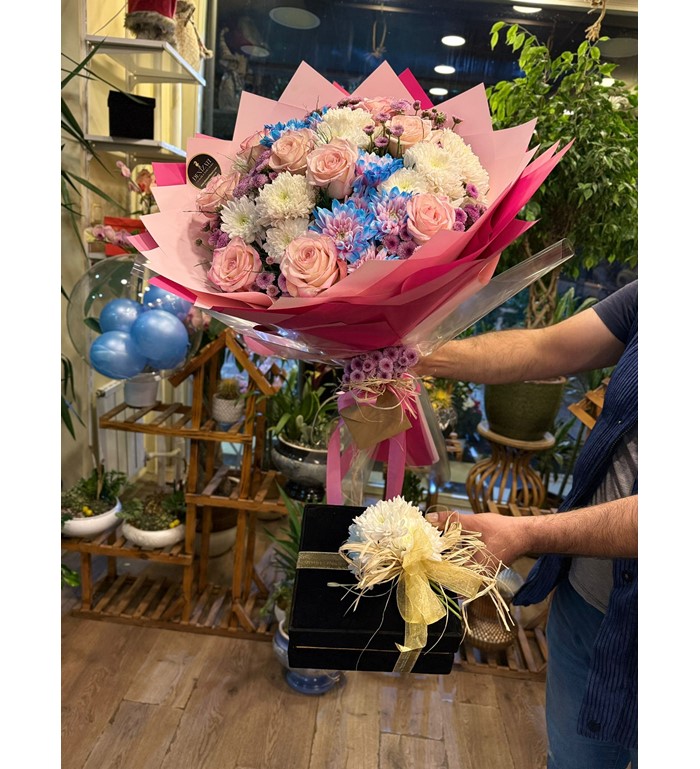 Pembe tonlarda her konsepte uyacak şık buket modelimizi Kadife kutu sütlü dolgulu Melodi marka çikolatalar ile buluşturduk.özel anlarınızda tercih edebileceğiniz setimiz hem çok şık hem de istediğiniz her şeye sahip bir modeldir.