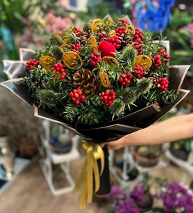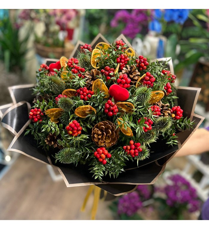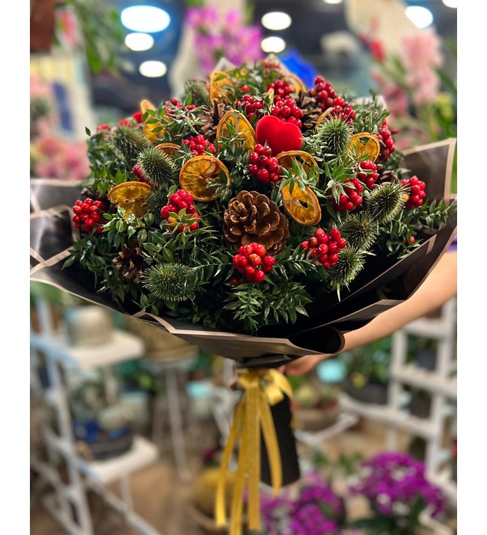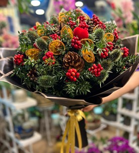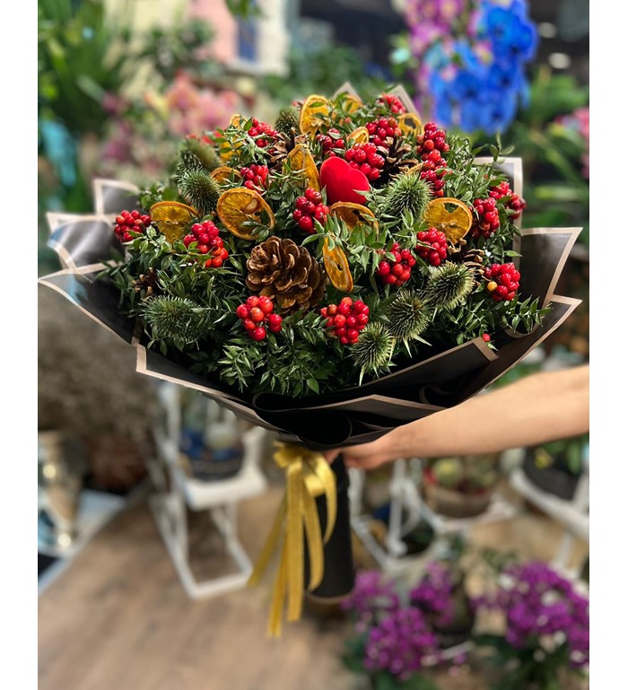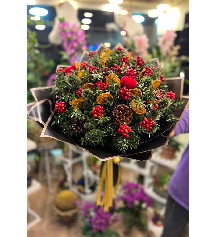 Yılbaşı çiçeğimiz kokinlarımız yeni yılda sevdiklerinizi mutlu etmek süpriz yapmak için en çok tercih edilen hediyelerimizdendir.Aralarına kurutulmuş portakal dilimleri,kozolak,yeşil diken ve kalpli objelerimizle görünümüne şahanelik eklenmiştir.Tek tıkla yanınızda.