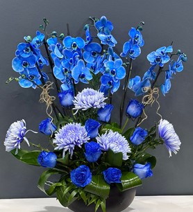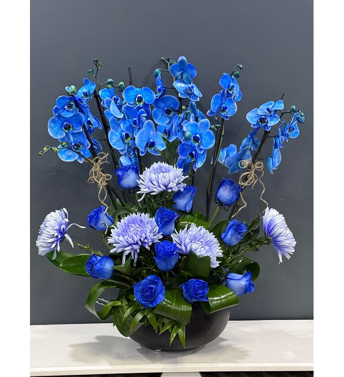 Vip Mavi Okide aranmanı 8 dallı mavi orkide ve ekvator mavi gül,anastasi ile hazırlanmış olup Enn çookk sevdiklerinize armağan adebilirsiniz.